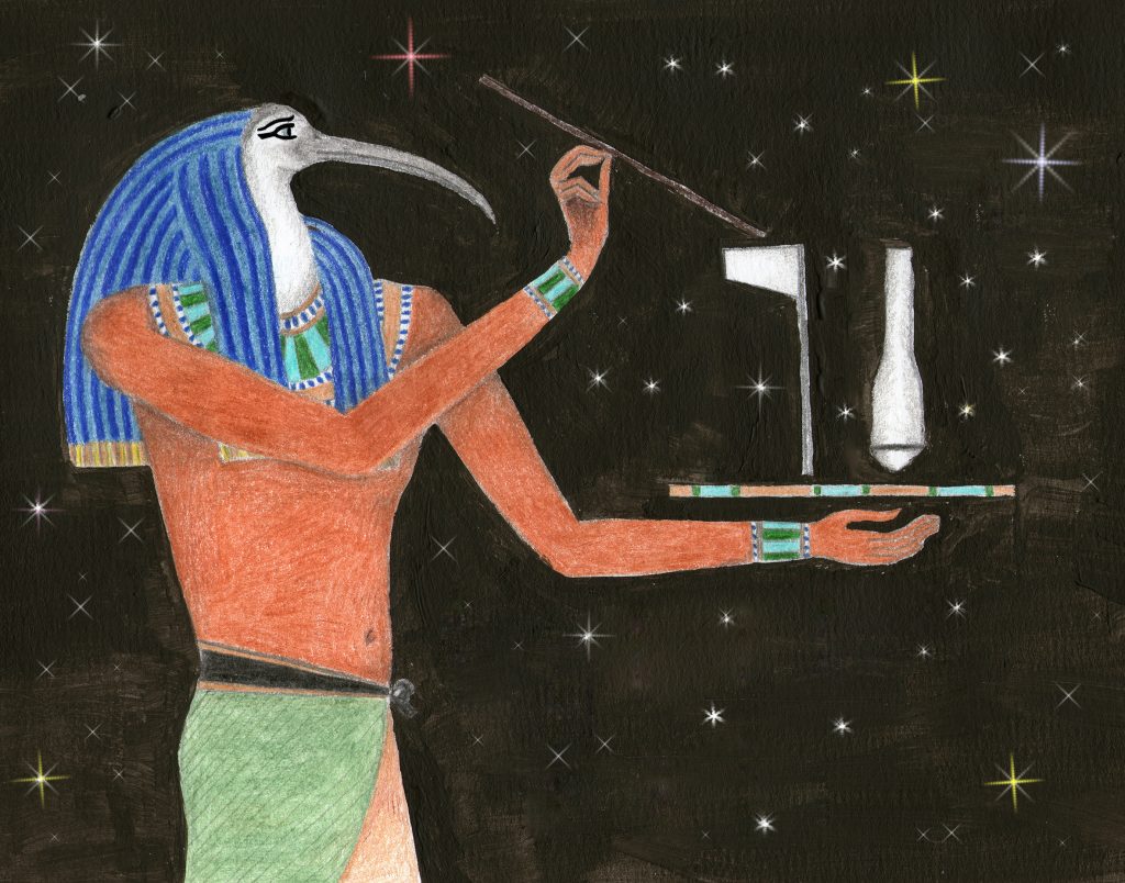 Narrano le leggende che l’umanità, dopo il Diluvio Universale, aveva perduto la Memoria delle Origini e il senso dell’Unità ed era entrata nell’Età della Separazione (11.000 a.C.). Occorreva inventare qualcosa che permettesse di conservare la Conoscenza: così Thot ha ideato e donato agli uomini i geroglifici e la scrittura.